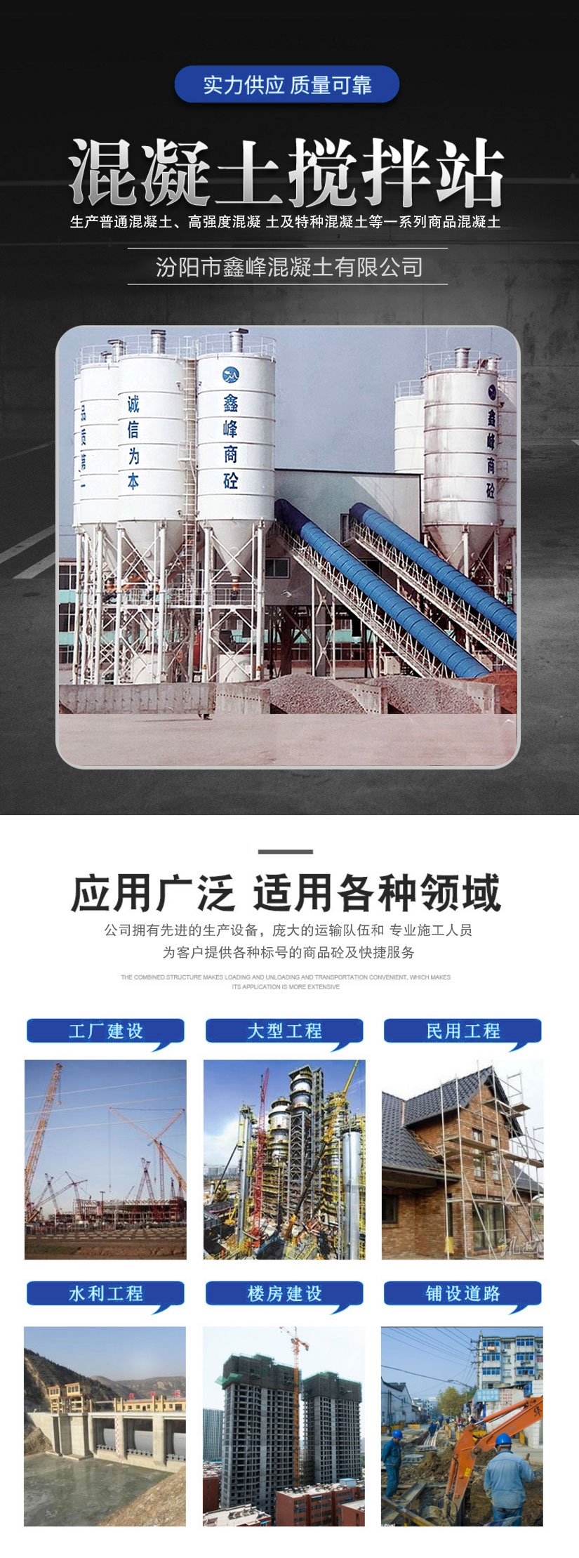 汾陽市鑫峰混凝土有限公司是一家生產(chǎn)普通混凝土、高強度混凝 土及特種混凝土等一系列商品混凝土的股份制企業(yè)。